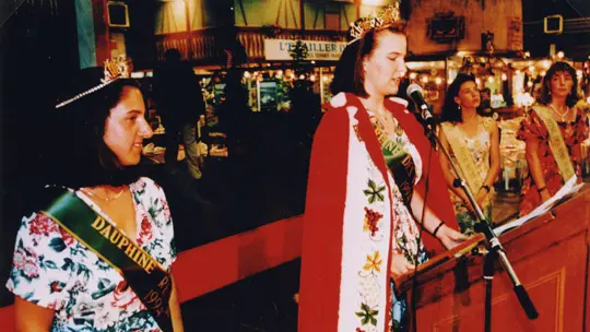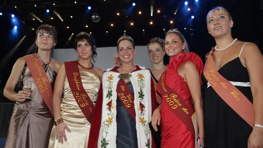 C’est dans cet esprit qu’est née, à Colmar en 1954, une tradition unique en France : l’élection des Reines des Vins d’Alsace.